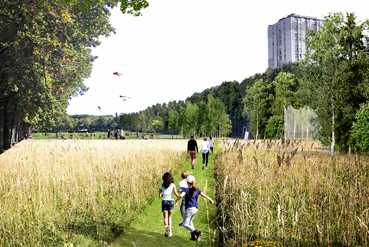New, rounded island-groves are added to the classic straight lines of the park. Their herb, shrub, and tree layers attract and sustain wildlife. This string of island-groves creates countless micro-landscapes, full of surprises for wandering visitors. Each section of the park, newly-enriched with wild spaces, becomes both garden and habitat. By cultivating and diversifying undergrowth, mesophile grassland, and wetland ecosystems, our project weaves a sustainable tapestry that maximizes visitor well-being.