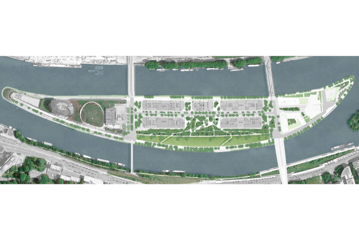 Présents sur l’île depuis le début de son réaménagement, notamment avec le jardin de préfiguration, nous avons assisté à l’évolution inespérée de son schéma urbanistique. Celui-ci a en effet permis le déclassement de terrains constructibles au bénéfice d’un parc. Situation nous rappelant la création du parc aux Angéliques à Bordeaux qui ne relevait pas non plus d’une vision préalable. L’importance de laisser de grands vides unitaires dans la ville s’était imposée, au fil des discussions avec les élus.