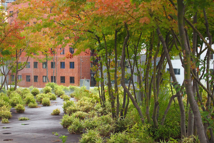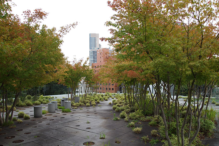 On the rooftop of a new building of Keio University of Tokyo, Michel Desvigne was asked to create a contemporary garden which could preserve the spirit of the (disappeared) garden imagined on this site by the famous Japanese sculptor Isamu Noguchi. Taking up the idea of “representations of nature” that Noguchi used to associate to modern plastic art, Michel Desvigne based his work on the transposition of an aerial image of a small river. The scale was carefully chosen to be very close to the spaces conceived by the sculptor.