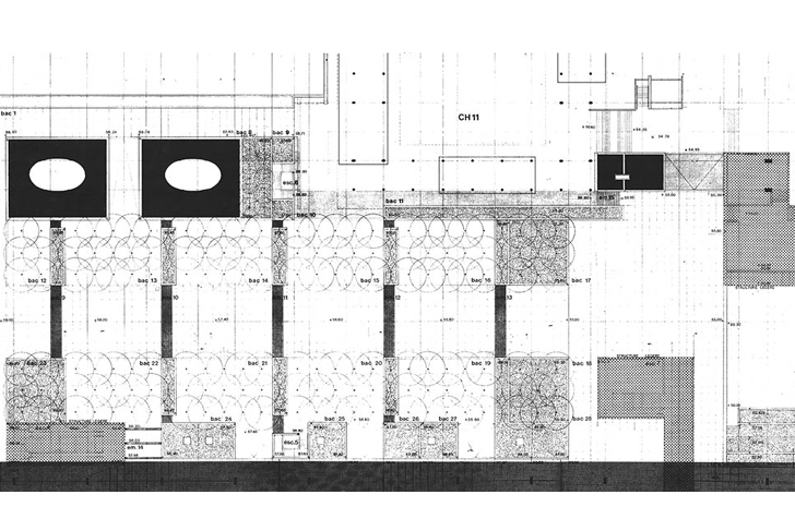La dépression qui caractérise la promenade de la Place Basse à la Fontaine Takis génère une rupture linéaire importante dans l’espace public et constitue une entrave à la fluidité des déplacements. La topographie est réhaussée afin de s’inscrire dans la continuité des promenades latérales. Cette mise à niveau prend en compte les contraintes liées à la structure du tablier, elle permet d’augmenter ponctuellement les épaisseurs de terre disponibles pour les plantations.