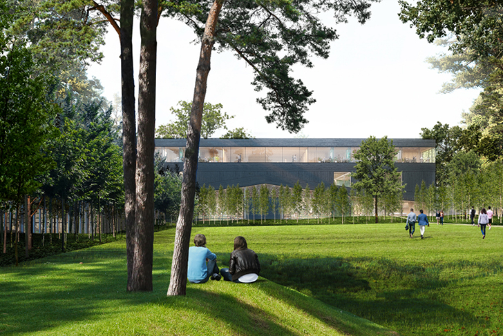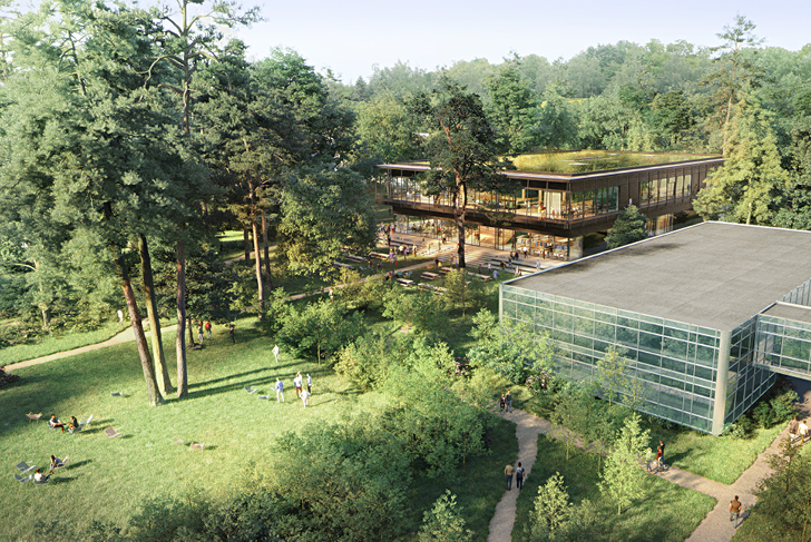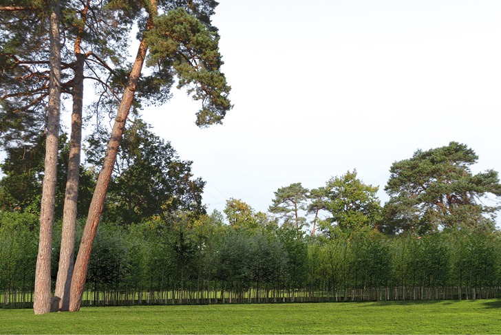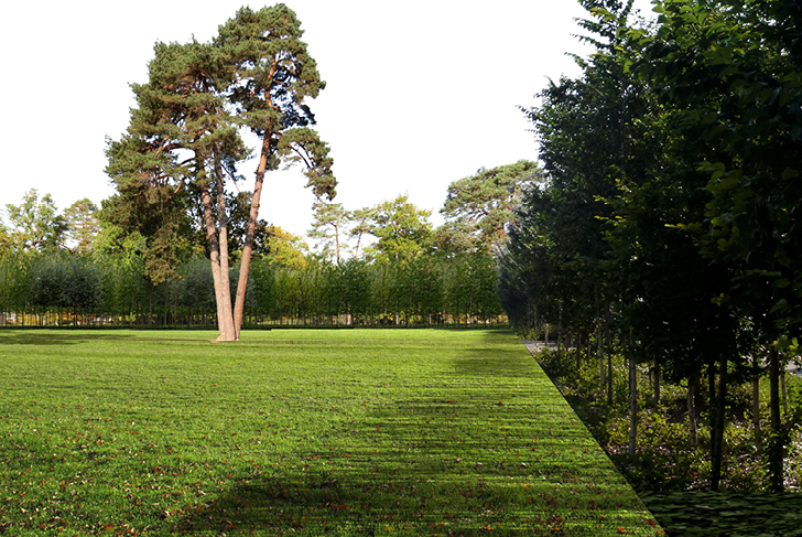 Aux chênes anciens et pins emblématiques est ajoutée une nouvelle strate d’arbres ( bouleaux, chênes…) de petite taille, densément plantés. Cette renaturation ambitieuse est complétée par la création d’un sous-bois dense constitué d’arbustes ( charme, églantier…) et de plantes variant selon l’exposition ( fougères, anémones, graminées), créant un nouvel ensemble paysager naturaliste et boisé.