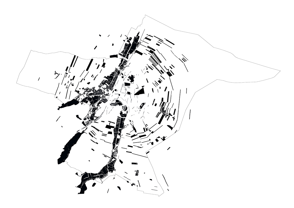 Certains tracés agricoles correspondent à un travail ancestral et à une qualité de sol inaliénable. Pour transformer de tels territoires, je propose de n’agir que sur la nature de ses composants, de les substituer par d’autres. Tout reste en place mais tout se transforme.