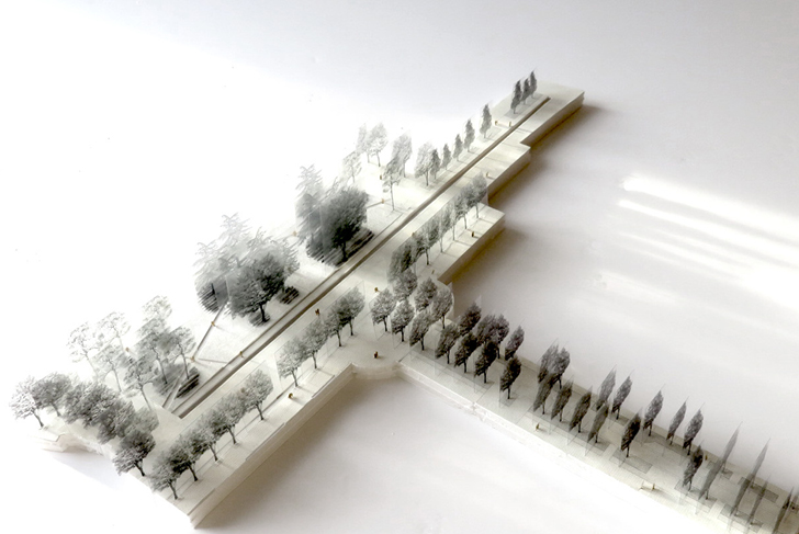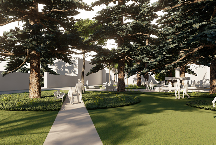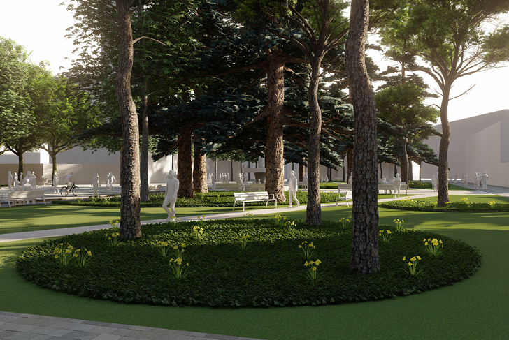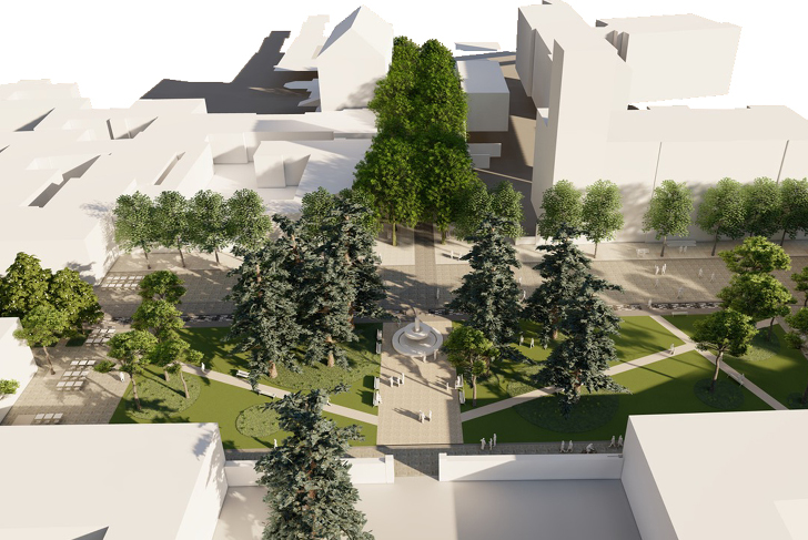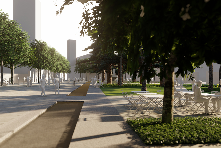 La place, dans un ambitieux équilibre entre végétal et minéral, devient un vaste espace public, dédié aux piétons et raccordé au reste de la ville. Le projet complète le système urbain historique dual (minéral-végétal) tout en le régénérant.