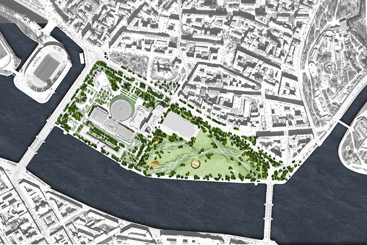 Situé au cœur du centre historique de Saint-Pétersbourg et à proximité de la rivière Neva, le projet se distingue par son aménagement naturaliste, inspiré de la géographie originelle de l'île Petrovsky. Notre objectif est de renforcer la relation entre la ville et la rivière, afin de révéler le lien fort et caché entre son histoire et la géographie. Il s’agit de redécouvrir le contexte historique du site, composé à l'origine de marécages, en le rendant à nouveau visible à la fois pour les résidents et les visiteurs.